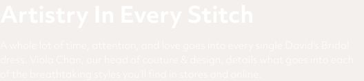 A whole lot of time, attention, and love goes into every single David’s Bridal dress. Viola Chan, our head of couture & design, details what goes into each of the breathtaking styles you’ll find in stores and online.
